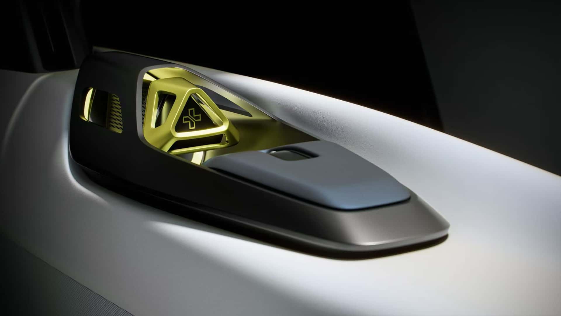 من الخارج، السيارة مبنية على فكرة الأسطح التي تتفاعل مع الضوء وتبدو وكأنها تتبدل كلما تحرك المشاهد حولها. طلاء Apex Blue يقترب من إحساس المعدن السائل ويضيف عمقًا للسطح، فيما تكسر لمسات Spark Yellow هذا الهدوء البصري بتباين أكثر حدّة.