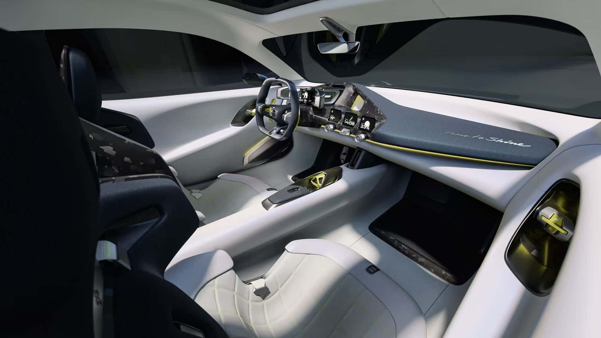داخل المقصورة، اعتمدت لينك آند كو ترتيب 2+2 يمزج بين خامات فاخرة وتفاصيل تقنية. حيث يعطي جلد Digital Shimmer الأبيض المقصورة طابعًا مشرقًا وعصريًا، بينما تضيف ألياف الكربون Textreme 360 المشغولة يدويًا روحًا قادمة من عالم السباقات.